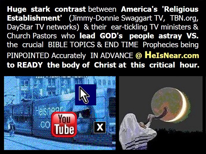 * Typically  only  LINKS  (to contribute/support)   are displayed in  HeIsNearCom's  social networks  showing simply  'how to support'  this  ministry  &  NEVER  any  money-raising  gimmicks  or  constant  'Praise-A-Thons'   as  seen  at  TBN  &  DayStar  & J. Swaggart  TV.   ( IE.  Jimmy Swaggart &  son  Donnie  offer   their  autographs in  a Bible  for  $1000  offering,  ETC ).